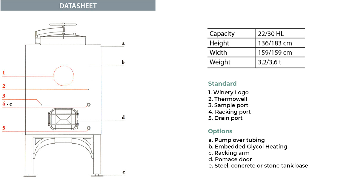 CONICAL design allows the lees to move with the wine, protecting it from oxidation. Thanks to its geometry, it is ideal for the fermentation of reds, since the liquid soaks the cap, helping to break it up and intensifying the maceration.