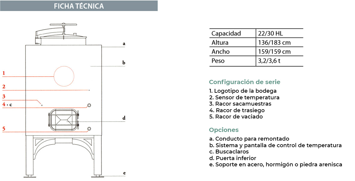 El diseño del CONICAL permite que las lías se muevan con el vino, protegiéndolo de la oxidación. Gracias a su geometría es idóneo para le fermentación de tintos, ya que el líquido empapa el sombrero, facilitando su rotura e intensificando la maceración.